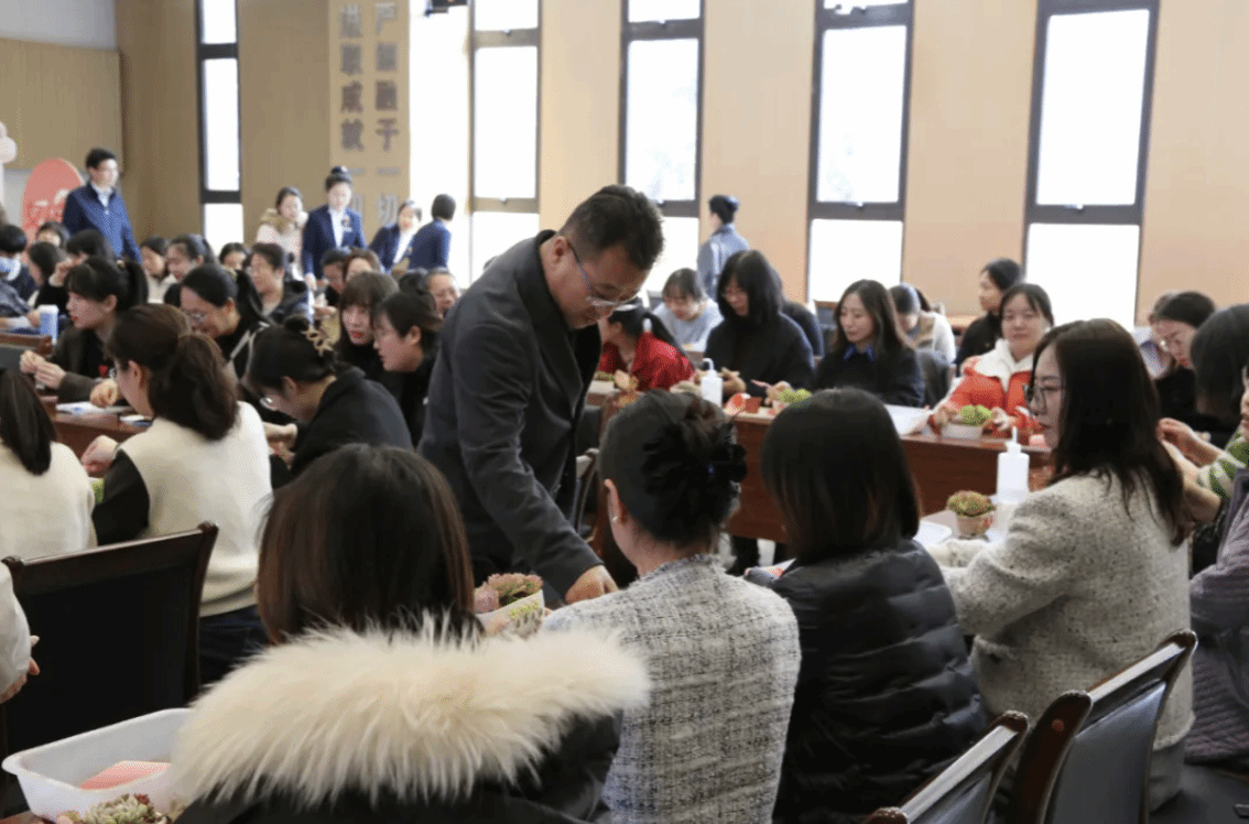 在实际操作环节,女同志挑选自己喜欢的多肉植株,小心翼翼地将它们栽种到精美的花盆中,再铺上色彩斑斓的装饰石子。大家一边动手,一边交流着养护经验,现场气氛热烈而融洽。一盆盆亲手栽培的多肉植物,让女职工在繁忙的生活中感受到了大自然的美好。