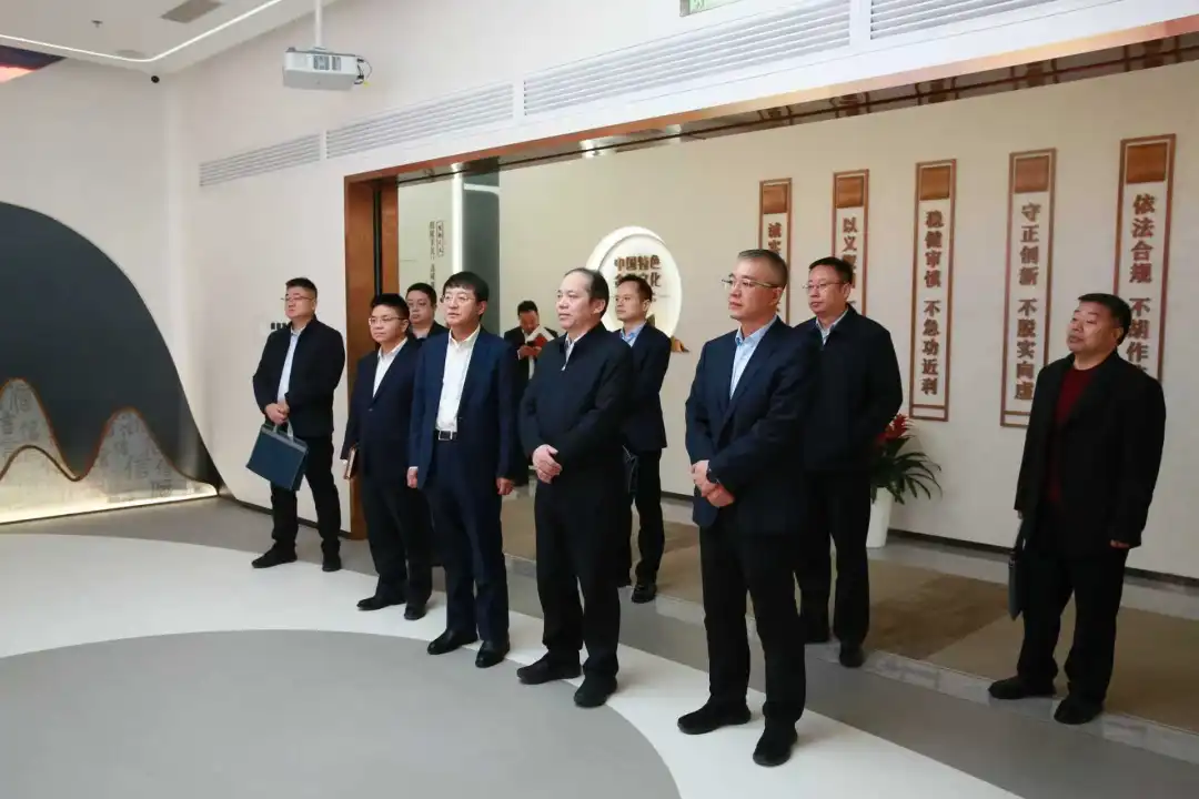 朱华平一行参观了陕国投文化展馆与职工活动中心。在企业文化展馆,详细了解陕国投从初创起步到稳步壮大的奋斗历程,以及发展历程、战略演进和业务布局;在职工活动中心,了解公司在员工关爱、工作氛围营造和职工业余文化生活方面的相关举措。