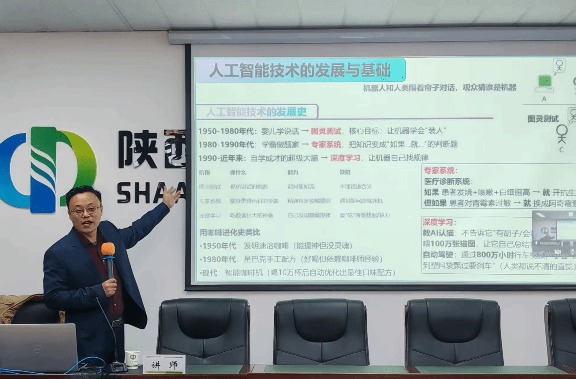 为积极贯彻落实国家数字化转型战略,助力陕西健康全体紧跟时代步伐,掌握前沿生产力工具,3月12日,中山河陕西健康综合事务部组织开展了“人工智能(AI)技术应用视频培训会”。本次培训采用“线上+线下”结合的形式举办,吸引了来自陕西健康内部近200名员工参与。培训以“深度求索(DeepSeek)技术与应用培训”为主题,通过场景化案例教学与实用技巧分享,旨在帮助员工掌握AI工具在工作、生活及学习中的创新应用。