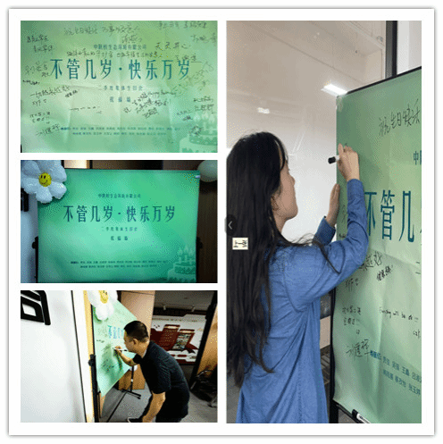 活动伊始,寿星们手持可降解记号笔,在由再生纸板打造的“生态祝福墙”上留下专属印记。每一笔签名与寄语都化作“生日树”的枝叶,组成生机勃勃的绿色图腾。“愿青山常在,清风常伴”“做绿水青山的守护者,也做幸福生活的追梦人”。