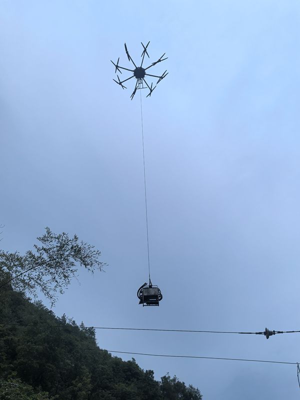 项目负责人姜超介绍,此次应用的无人机搭载了多冗余飞控系统、实时避障雷达和抗干扰通信模块,即使在强风环境下也能保持吊装姿态稳定。同时,地面团队通过三维建模提前规划航线,实行两个无人机操控员接力操作,结合无人机传回的高清影像动态调整落点,确保全过程“零失误”,节约运输成本约4万元, 减少临时道路开挖面积80%以上,降低野外作业人员坠落风险100%。