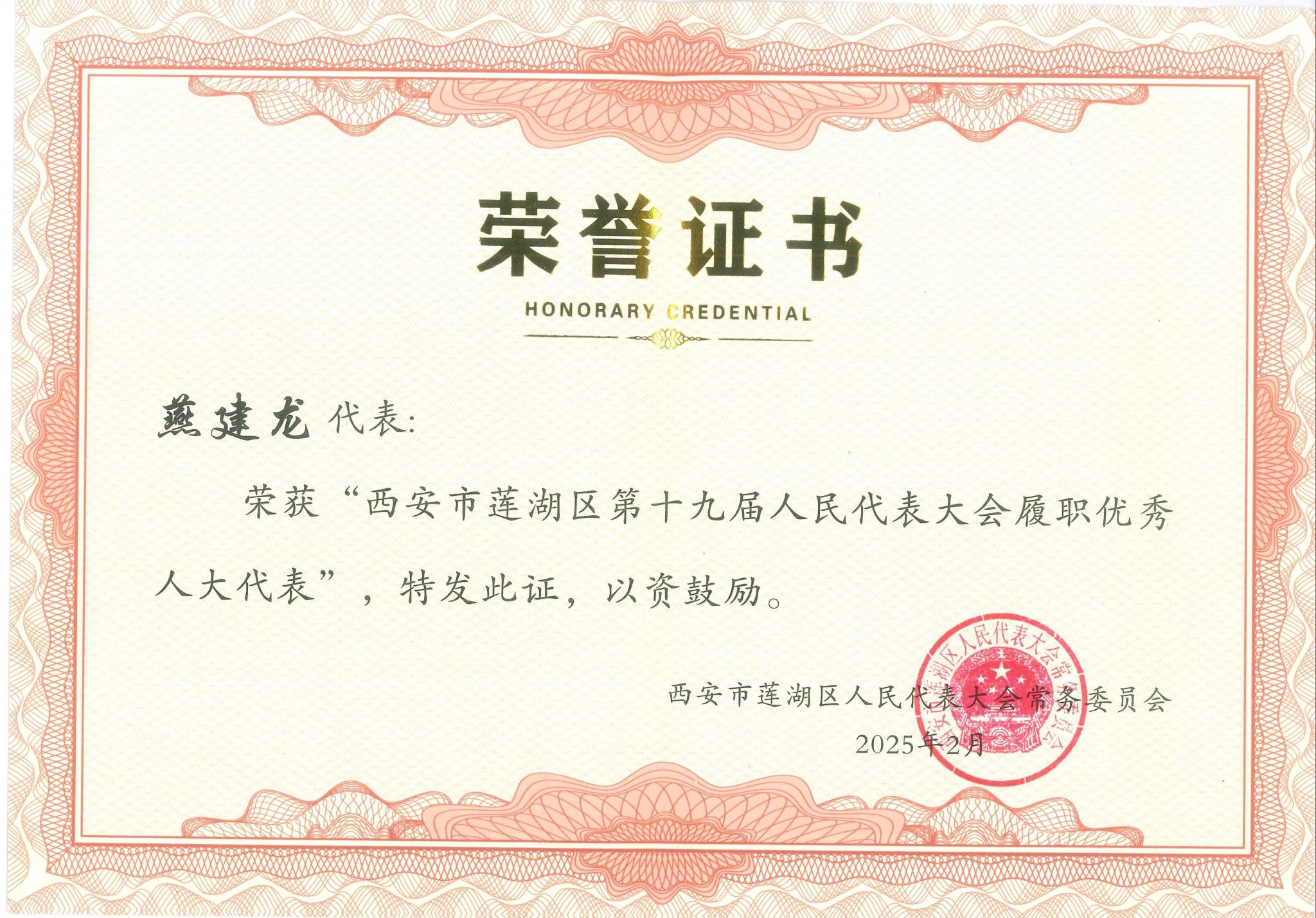 近日,西安市莲湖区第十九届人民代表大会落下帷幕。中陕核集团总工程师、我院党委书记、院长、莲湖区人大代表燕建龙凭借其出色的履职实绩和表现,荣获“西安市莲湖区第十九届人民代表大会履职优秀人大代表”称号。这一荣誉不仅是对燕建龙个人履职能力的充分肯定,也是对燕建龙领导的西北综勘长期以来积极参与地方经济社会发展、履行社会责任的高度认可与褒奖。