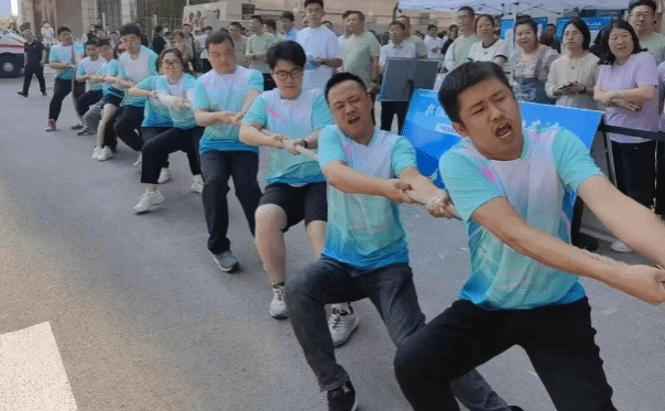 拔河比赛时,队员们紧握长绳,脚抵着脚,伴随着整齐划一、震耳欲聋的号子声,心往一处想、劲往一处使,将集体的力量拧成一股绳,生动诠释了顽强拼搏、永不言弃的团队精神。
