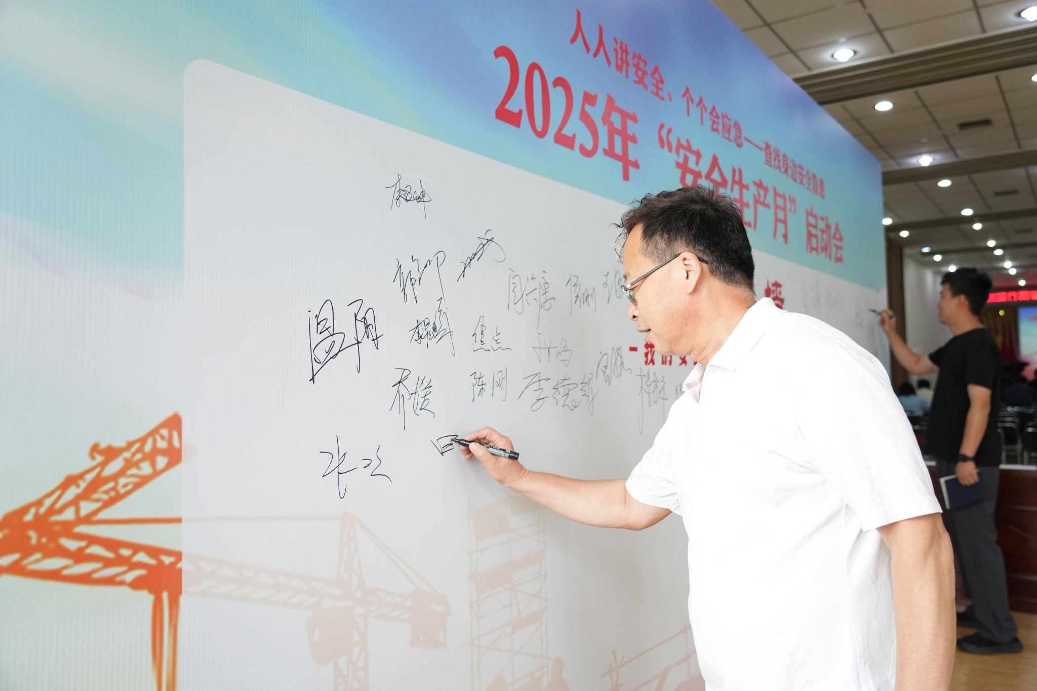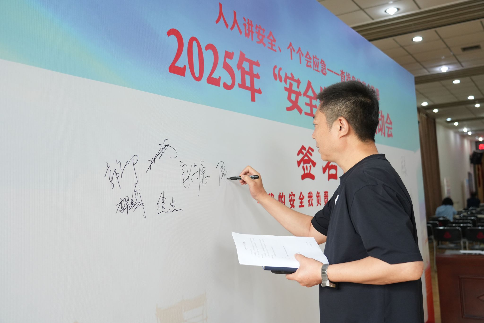 会议组织参会人员学习了《院2025年“安全生产月”活动实施方案》和安全公开课,观看了安全生产警示教育专题片,举行了“安全签名墙”签名仪式并进行集体宣誓。