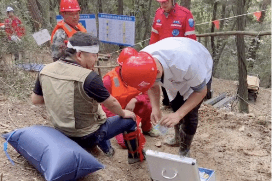 安全员第一时间发出警报,组织现场人员沿预定路线有序撤离。演练中,当发现一名人员“腿部受伤”后,医疗救护组立即响应,利用现场物资制作简易夹板,为伤员固定受伤腿部,进行专业包扎,并通过担架将伤员转运至安全地带救治。