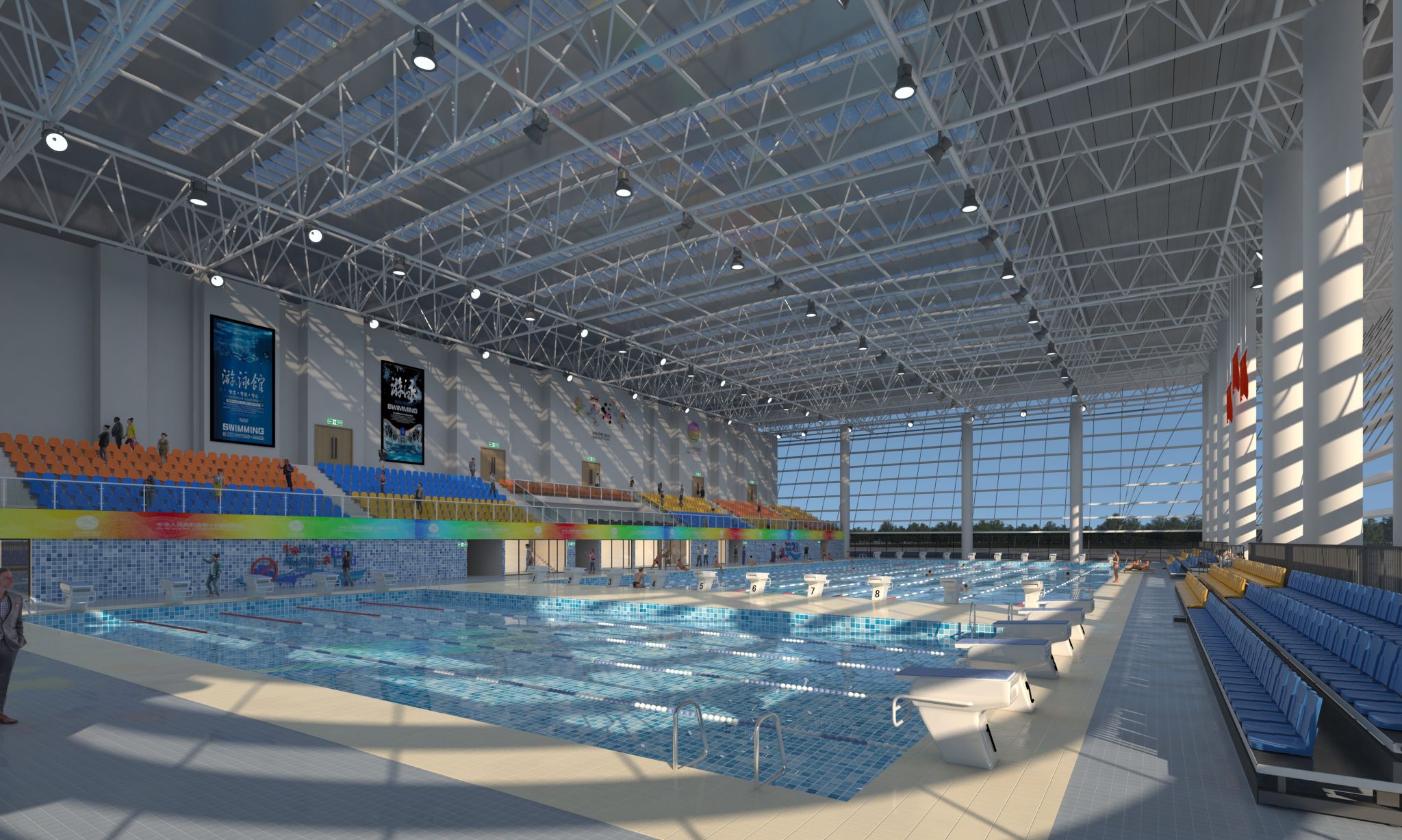 项目采用多种技术措施,提升节能效果。屋面每跨设置采光带,通过电动遮光帘进行遮阳,避免正午的直射阳光。立面、幕墙结合开窗形成自然通风,与新风系统共同对建筑内部空气进行调节,减少空调使用。建筑屋顶、立面局部采用太阳能板,对太阳能进行储存,用于二次发电、加热等功能。同时引入自然光,满足照度需求,进一步节约能耗。项目建成后将与周边全民健身中心、学校、社区功能联动,实现市民活动、课外教学、运动培训等多重效果,激发全民健身的热情,为城区规划开发注入活力。