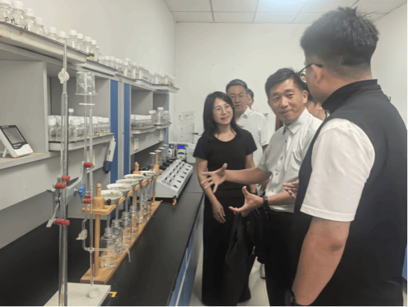 在实验室参观中,测试公司重点展示了华北油田、大庆油田铀页岩矿溶浸工艺试验的过程、详细介绍了铀页岩矿工艺试验的技术路线、阶段成果以及长庆油田镇原BSK1工艺试验取得的成果,让陈栗一行直观的了解到工艺试验技术的实践应用情况。