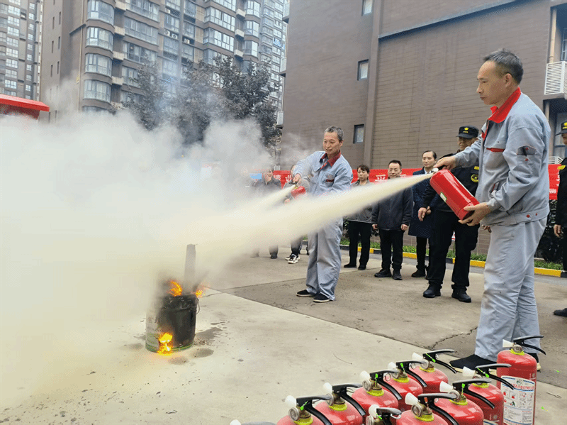 实操演练也是检验和提升实战能力的关键环节。各项目紧扣消防宣传月要求,结合高层住宅、办公楼、商铺等不同场景的消防安全特点,精心组织了多场消防应急演练。演练过程中,物业人员反应迅速、分工明确,高效完成了“火情”报警、初期处置和人员疏散等任务。同时,特邀消防专业人员现场示范灭火器(“提、拔、握、压”四步法)的正确使用方法,并手把手指导业主进行实操体验,有效提升了大家的应急避险、自救互救技能。