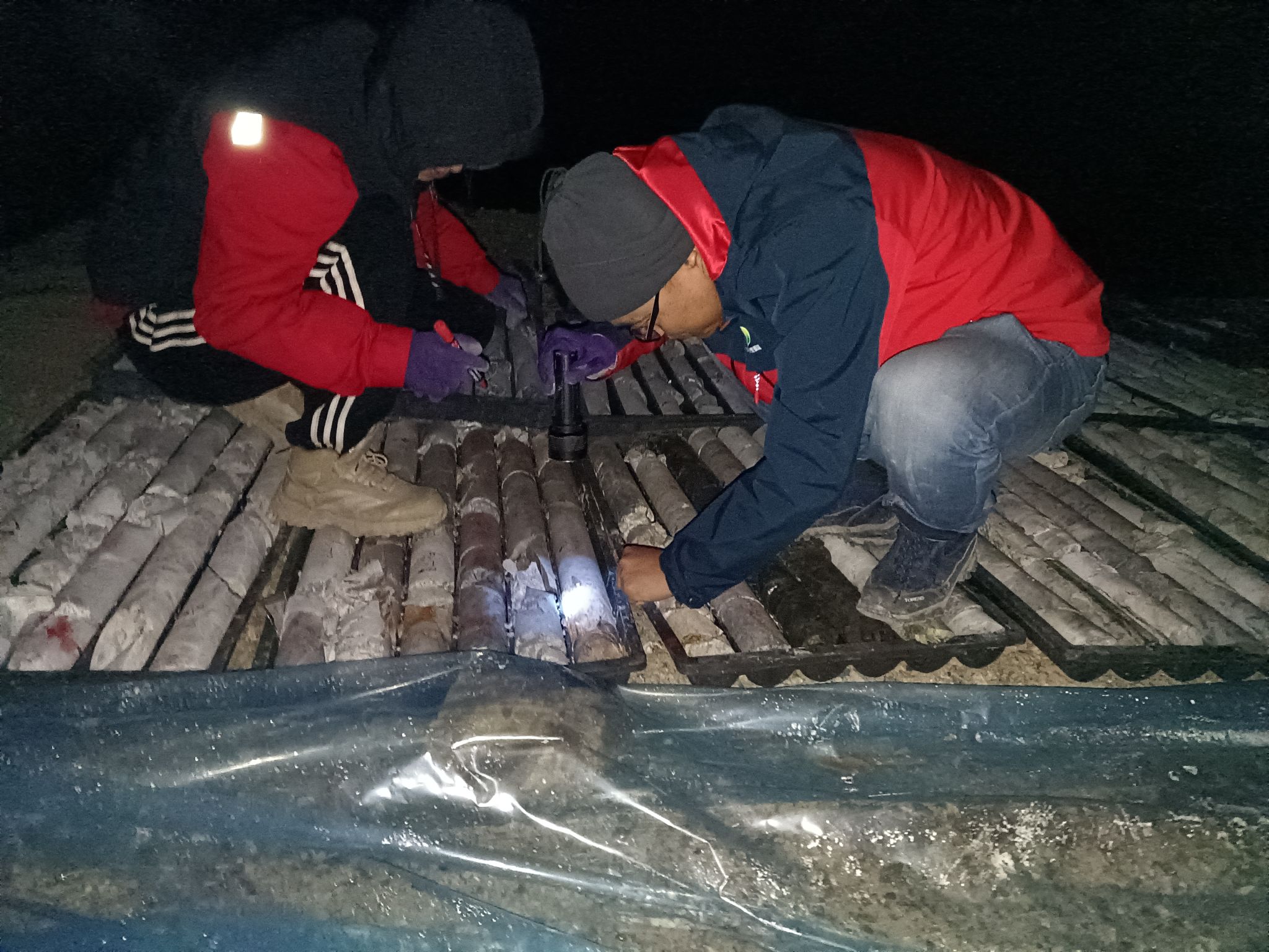 面对恶劣的自然环境和未痊愈的左脚,王嘉炜没有丝毫犹豫,收拾行囊便奔赴野外。由于单位人员紧缺,项目组多为新入职员工,缺乏高原工作经验和专业技能,他主动扛起“全能领头人”角色:白天,他忍着缺氧带来的头疼、胸闷,以及左脚隐隐作痛,带领团队开展地质修测、剖面测量、探槽编录、钻探编录和水工环测量等工作,每一个环节都亲力亲为、现场指导;夜晚,待队员们休息后,他独自卧床按摩肿胀的脚部,缓解疼痛后又继续梳理当天的工作记录,规划次日的工作任务。自己常常因缺氧辗转难眠,却仍坚持清晨提前起身检查物资、安排行程,仅抽空给家人发一条报平安的短信。“作为项目负责人,我必须冲在前面,给大家树立榜样,才能带动所有人一起克服困难。”这是他常挂在嘴边的话,也成为团队攻坚克难的精神动力。