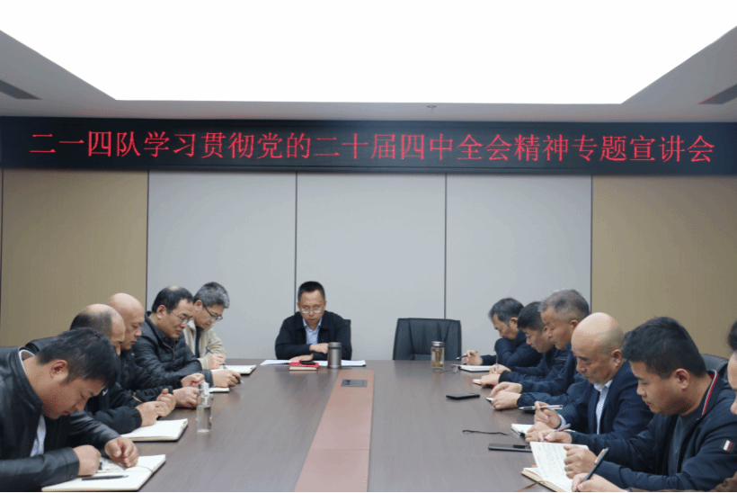 11月28日下午,中陕核工业集团二一四大队有限公司召开学习贯彻党的二十届四中全会精神专题宣讲会。公司党委书记、董事长付星作专题宣讲,公司领导班子及全体党员干部职工共计50余人参加会议,城固基地通过视频连线同步参会。
