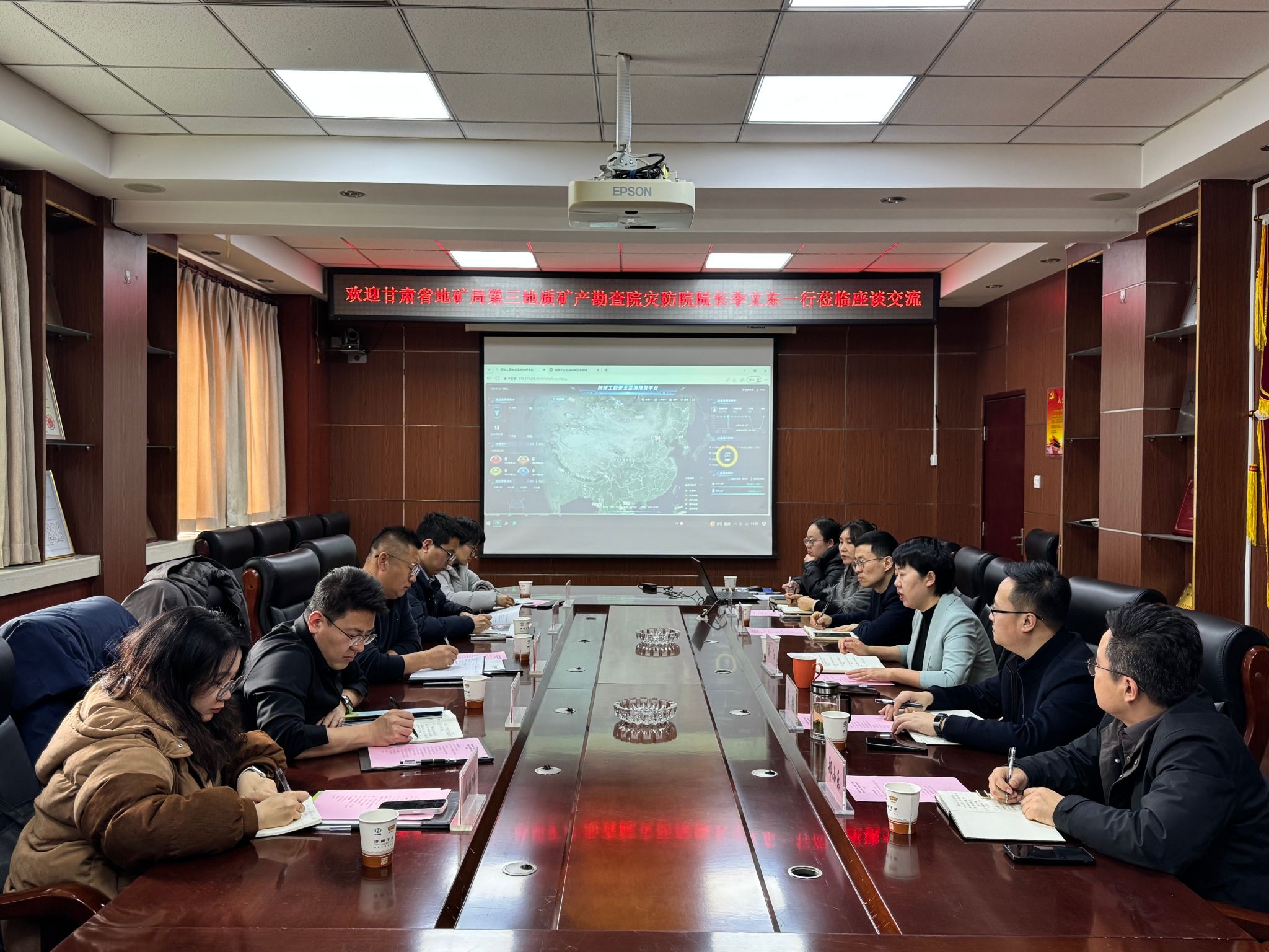 在与甘肃省地质局第三勘查院灾防院座谈中,该院院长李文东详细介绍了该院的发展沿革、产业优势及核心技术能力,着重分享了在城市地质三维实景监测扫描、山水林田湖草沙综合治理等领域的成功案例与宝贵经验。双方紧扣行业发展趋势,立足各自业务实际,就地灾、矿山安全监测预警平台建设优化、技术成果转化应用等关键环节进行了深入的交流探讨,并就山水林田湖草沙项目的合作达成了初步共识。