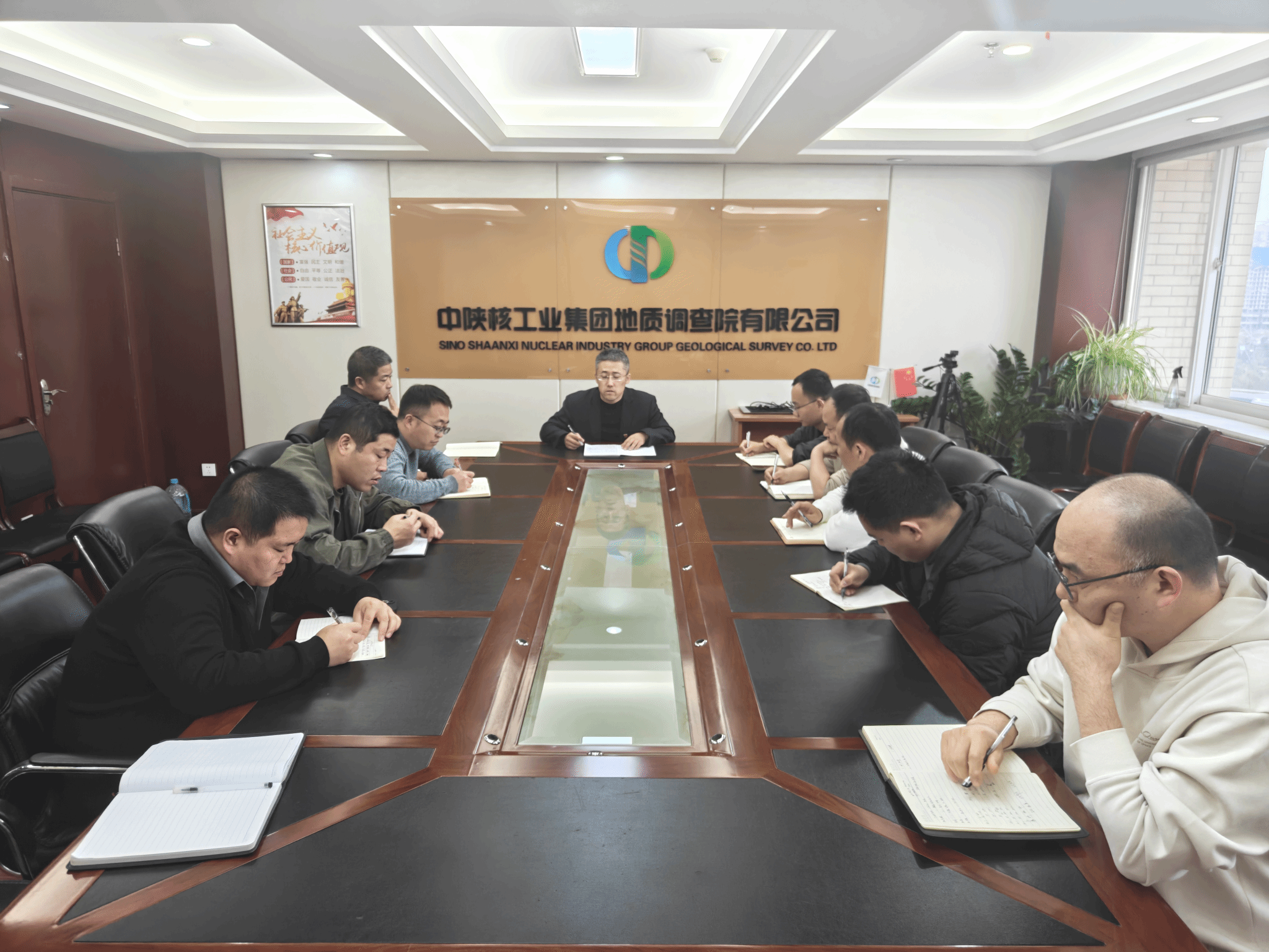 围绕年度重点任务,徐磊从市场勘查、省地勘基金项目及集团自有矿权勘查等方面进行了全面部署,明确目标、压实责任。各项目负责人依次作表态发言,大家一致表示,将坚决贯彻落实矿产勘查研究院工作安排,大力弘扬中陕核人“三光荣”“四特别”精神,迎难而上、实干担当,全力以赴完成各项目标任务。