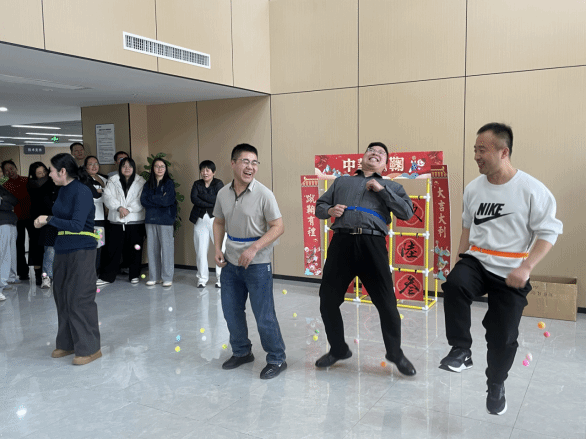 本次活动设置了四大趣味竞技环节,将传统文化与团队协作巧妙融合。在“慧眼巧思·猜灯谜”区域,红色灯笼下悬挂着百余条灯谜,职工们或驻足沉思,或热烈讨论,猜中谜底后欢呼雀跃,凭智慧赢取积分。“声动元宵·识乐曲”环节则考验大家的音乐素养,经典老歌与热门金曲前奏一响,抢答铃便此起彼伏,现场秒变“中华小曲库”竞技场。最具动感的“金马摆尾·抖元宵”环节中,参与者腰系装满乒乓球的盒子,通过扭动跳跃奋力抖出“元宵”,滑稽的动作引得笑声不断。压轴的“鞠舞元宵·竞技乐”更是将传统蹴鞠与现代九宫格结合,职工们瞄准靶心、精准踢射,在体验古人乐趣的同时展现了拼搏斗志。活动中大家全情投入,现场加油声、欢笑声交织成一片欢乐的海洋。