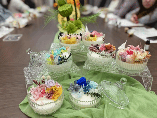 经过一个多小时的精心制作,一件件造型别致、香气淡雅的永生花香薰陆续完成。大家捧着自己的作品合影留念,纷纷表示这样的活动既放松身心,又提升了审美情趣。