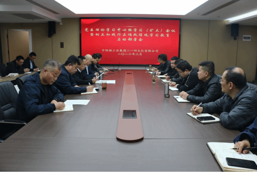 为深入学习贯彻习近平总书记关于树立和践行正确政绩观的重要论述,全面落实中央、省委、省国资委及集团公司党委部署要求,3月13日下午,中陕核二一四队在11楼会议室召开党委理论学习中心组学习(扩大)会议暨树立和践行正确政绩观学习教育启动部署会。公司党委书记、董事长付星主持会议并讲话。