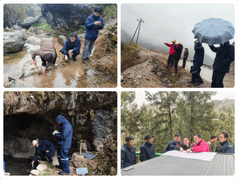 白天,队员们顶风冒雪开展野外实地调查,地质组、水工环组聚焦溶洞、泉眼、山间溪流等关键水文地质点位,严格遵循行业规范流程,逐一完成流量监测、水温记录等工作,精准采集每一组数据、严谨把控每一处细节,全力确保第一手地质资料的真实、完整与可靠。雨雪虽打湿了衣衫,却丝毫没有浇灭团队履职尽责的工作热情;物探组为加快工作进度,更是坚守野外一线,持续开展数据采集直至凌晨4点,用坚守诠释责任与担当。