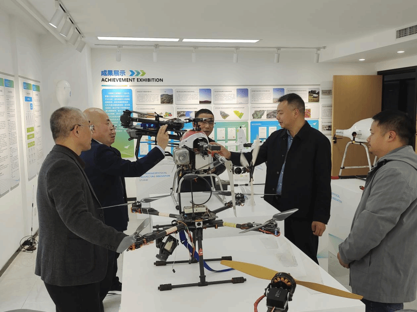 座谈结束后,李新胜一行实地参观了二一四队无人机航空物探技术装备,认真听取航空物探技术骨干项目经验汇报,详细了解了二一四队技术装备与项目执行实力,对二一四队在地勘基金项目、铀矿勘查、生态环境调查治理、矿山隐蔽致灾因素普查治理、矿山建设筹备等业务中秉持的“大地质”协同发展理念,以及勇于创新、敢于破局、锐意进取的管理运营模式给予高度评价和充分认可。