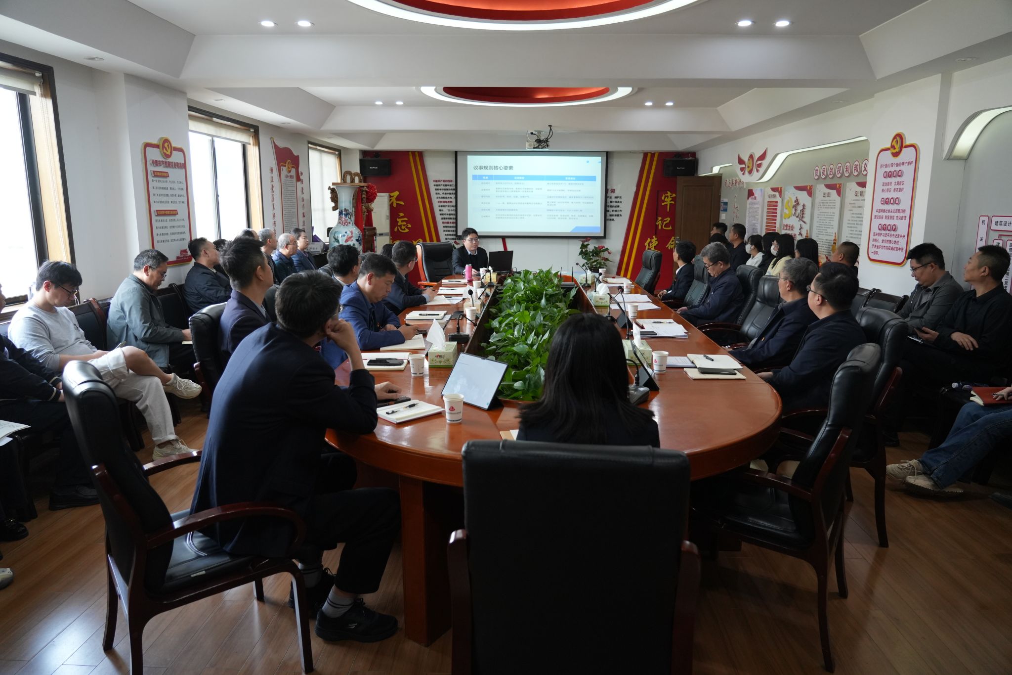 4月3日,西北综勘召开党委理论学习中心组学习(扩大)会议,学习习近平总书记在雄安新区考察时的重要讲话精神、学习习近平总书记关于树立和践行正确政绩观的重要论述、学习新修订的《国有企业领导人员廉洁从业规定》,院法律顾问做了题为《新修订公司法背景下国有企业治理与特殊制度解析》的专题讲座。西北综勘党委中心组成员和各职能处室负责人参加了学习,并结合院实际开展交流研讨。
