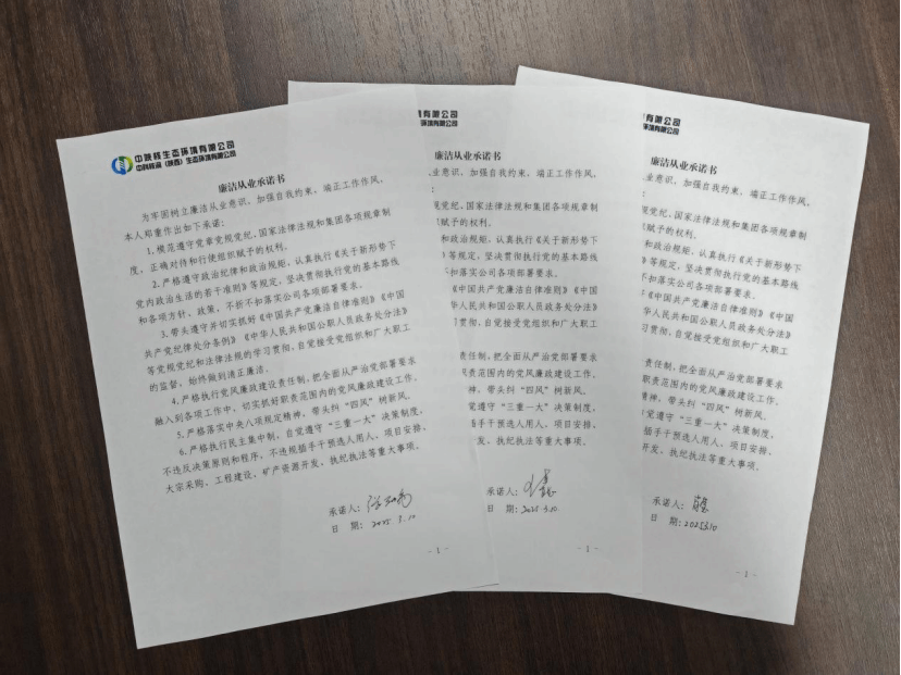 四是逢提必诺,扛牢廉洁承诺关。从思想引导行为规范,全周期、多频段构建廉洁从业屏障。从源头杜绝违规违纪行为发生,筑牢廉洁从业防线。