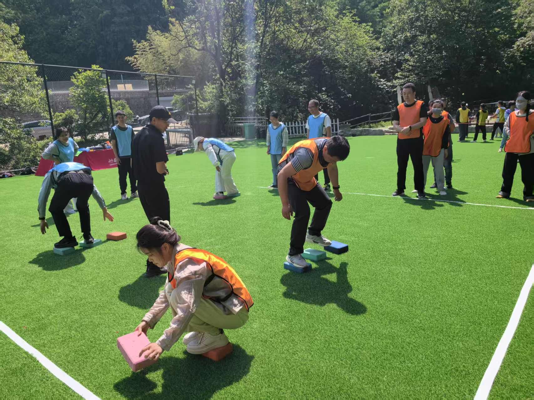 活动精心设计了多项团队协作项目。“鼓动人心”环节中,党员们通过默契配合调整鼓面角度,在反复尝试中领悟团队协作的关键;“摸石头过河”项目考验平衡与互助精神,队员们借助瑜伽砖有序渡河,展现出坚韧与智慧;“决战沙场”通过战术配合凸显沟通与信任的重要性;“蒙眼互打”则以轻松趣味的方式增进友谊,缓解工作压力。最后的拔河比赛将现场氛围推向高潮,队员们全力拼搏,彰显了团结奋进的精神风貌。