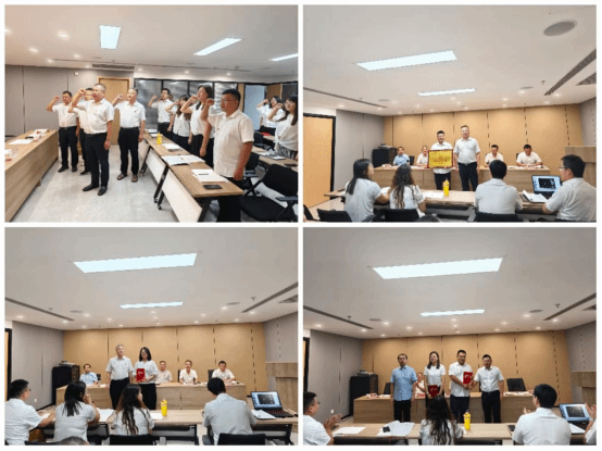 大会在庄严的国歌声中拉开序幕。全体肃立,奏唱国歌,激昂的旋律在会场回荡,点燃了每一位党员的爱国热忱与使命担当。随后,在领誓人党委书记、执行董事邹海峰的带领下,二一八队全体党员面对鲜红的党旗,举起右拳,重温入党誓词。“我志愿加入中国共产党……”铿锵有力的誓言,字字千钧,宣示着不忘初心、牢记使命的坚定信念。