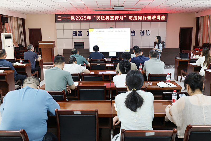 5月20日,中陕核二一一队在四楼大会议室组织举办了“民法典宣传月”与法同行普法培训活动,旨在深入学习宣传贯彻习近平法治思想,提升干部职工法治素养,强化合规与法治建设。全队干部职工共30余人参加。