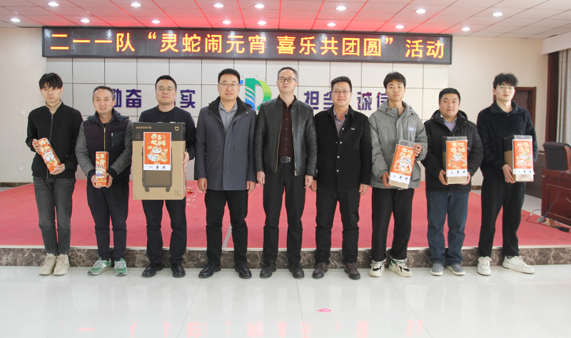 2025年2月12日,二一一队办公楼大会议室热闹非凡,二一一队工会组织的“灵蛇闹元宵 喜乐共团圆”主题活动在这里欢乐上演,公司在岗的所有职工齐聚一堂,共度了一个充满趣味与欢乐的元宵佳节。二一一队工会主席、副总经理何计忠致辞。