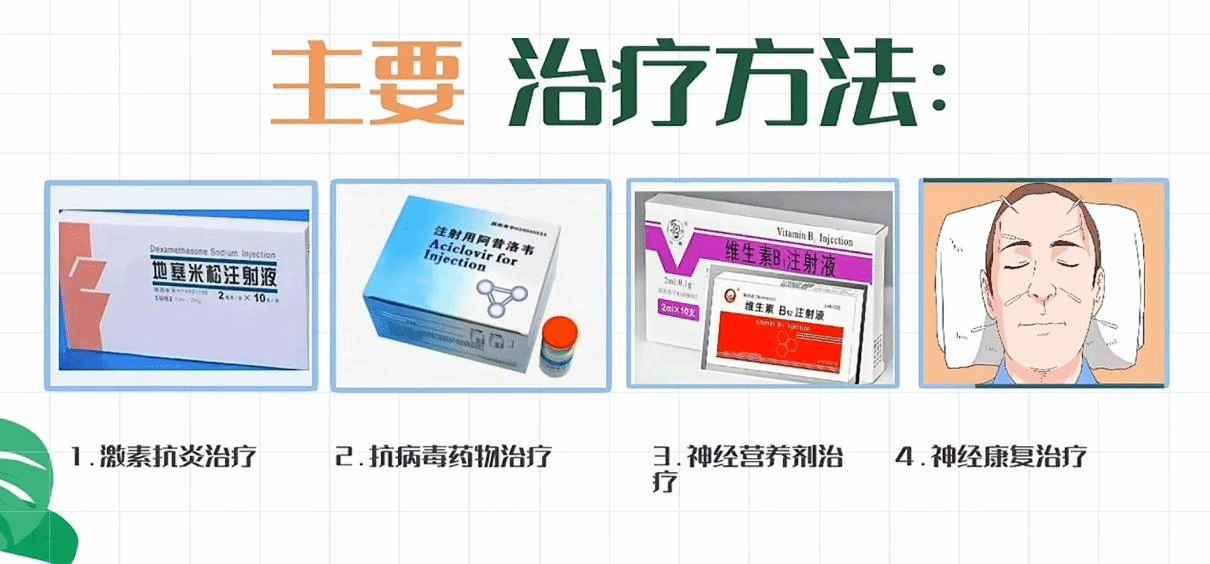 急性期内使用激素、抗病毒药物和营养神经药物进行治疗。