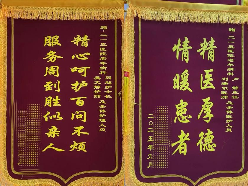 这两面锦旗,不仅承载着一个家庭的谢意,也见证着二一五医院老年医学科在老年重症、多病共存患者的综合救治方面的专业实力与服务温度。