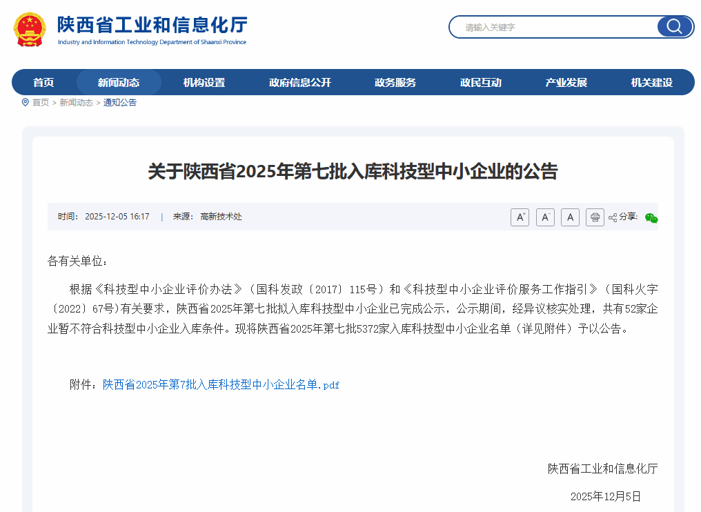 近日,陕西省工业和信息化厅正式公布了2025年第七批入库科技型中小企业名单,中陕核核盛科技有限公司(以下简称“核盛科技”),凭借扎实的研发实力、突出的技术创新能力以及良好的发展潜力,经过严格评审,成功入选并完成公示。这标志着公司在科技创新成果转化的道路上取得了重要进展,获得了省级层面的权威认可。科技型中小企业资质是企业创新能力的重要认证,代表着企业在自主知识产权、科技成果转化、研发组织管理和成长性等方面达到较高水平。...