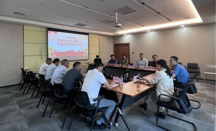 7月13日,安徽省芜湖市湾沚区陶荣副区长一行到陕核保理开展关于促业务交流的考察活动。座谈交流会由陕核投资董事长王瀑霖主持。 座谈会上,王瀑霖对陶荣一行的到访表示欢迎,介绍了集团公司和陕核投资的历史沿革、队...