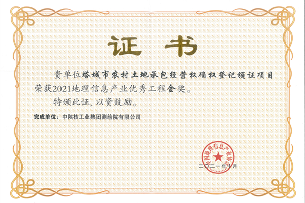 6月23日,中国地理信息产业协会2021年国家优质工程奖评选结果揭晓,二二四大队中陕核工业集团测绘院有限公司塔城市农村土地承包经营权确权登记颁证项目荣获中国地理信息产业协会“2021中国地理信息产业优秀工程奖金奖...