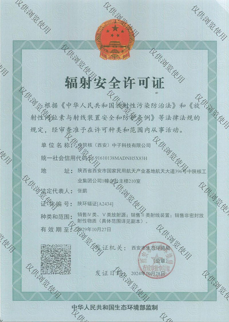近日,经西安市生态环境局正式批复,中陕核中子科技有限公司(以下简称“中子科技”)获发《辐射安全许可证》,这标志着中子科技具备了销售Ⅱ类射线装置(中子发生器),销售Ⅳ类、Ⅴ类放射源,销售非密封放射性物质等业务活动的许可,...