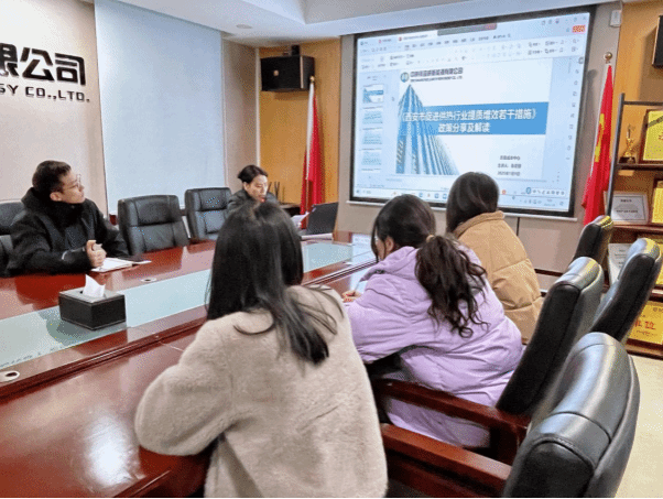 为深入贯彻落实《西安市促进供热行业提质增效若干措施》文件精神,进一步提升公司供热业务的管理水平和技术能力。1月9日,宜威公司举办专题培训,旨在让全体员工深入理解政策内涵,并应用到日常工作中,从而提升公司供热服务质量与效率,更好地为供热用户提供高品质服务。培训由方案成本中心副主任鱼亚丽主讲,九鼎办公区全体员工现场参会,咸阳分公司、工程维保部员工视频参会。 若干措施聚焦强化行业监管、提升供热保障、促进节能降碳。...