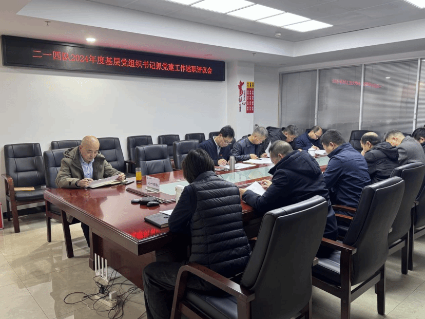 2025年1月10日,二一四队成功组织召开了2024年度基层党组织书记抓党建工作述职评议会暨中层干部述职述廉评议会,公司领导班子、各基层党组织书记及支委委员、中层干部、职工代表30余人参加会议。 会上,7名党支部书记依次围绕强化政治理论学习、巩固提升主题教育成果、开展党纪学习教育、推动党建和业务深度融合、发挥基层党组织战斗堡垒作用和党员先锋模范作用等方面进行了述职。16名中层正职立足岗位,从年度业务指标完成情况、工作亮点、...