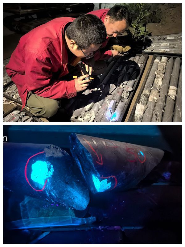 在秦岭山麓腹地,晚上10点的钻探机台依然轰鸣。大岔沟项目组队员借着钻机机台的探照灯,正仔细记录着刚取出的岩芯特征。“ZK11201见到2米厚的构造破碎带,蚀变矿物有......”他在记录本上快速书写,这是今晚必须要完成的钻孔编录。当前正值我省十四五矿产规划重点矿产勘查项目攻坚阶段,由中陕核地调院承担的“陕西省宁陕县大岔沟钨多金属矿普查”项目进入最后冲刺。项目负责人刘恒介绍:“我们必须在4月底前完成全部野外工作,现在全项目组开启‘...