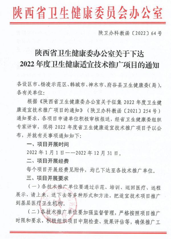 近日,陕西省卫生健康委员会办公室下发了《2022年度卫生健康适宜技术推广项目的通知》,陕西省核工业二一五医院脑神经重症监护室“低成本增强现实技术在急性脑出血微创手术治疗中的应用”被评为2022年适宜技术推广项...