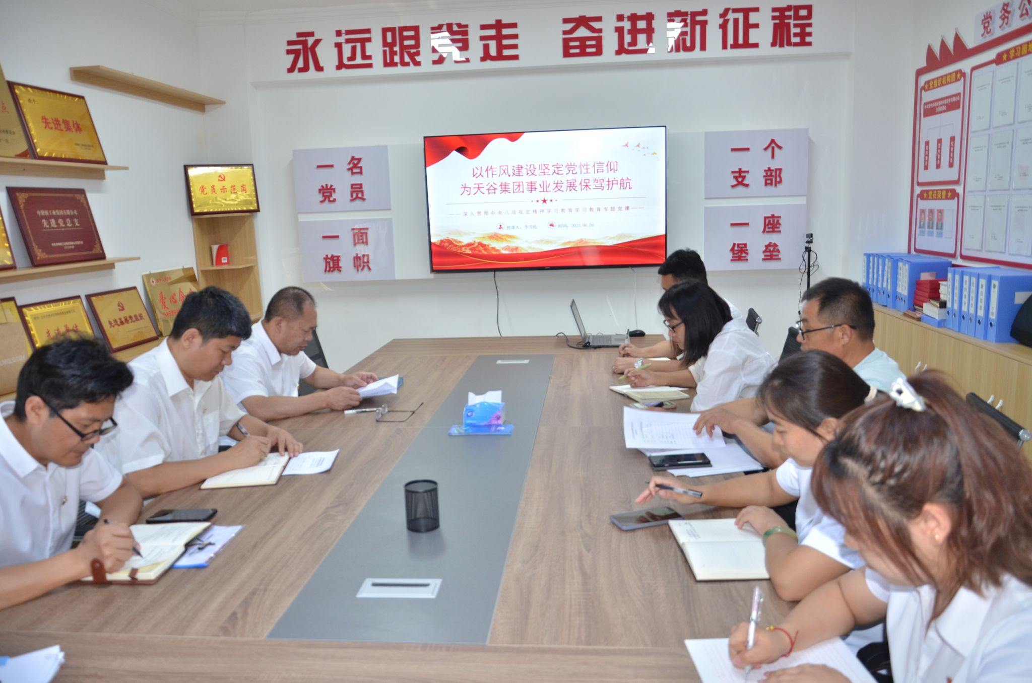 6月26日下午,中陕核天谷集团党委书记、执行董事李雪松为党建联系点天然谷公司全体党员干部讲授深入贯彻中央八项规定精神学习教育专题党课,天然谷公司班子领导、中层以上干部及全体党员参加会议。会上,李雪松书记围绕作风建设坚定党性信仰展开授课。他教导全体党员干部,要以习近平总书记关于加强党的作风建设的重要论述精神为指引,把牢方向、坚定信心。客观认识作风建设方面的薄弱点,让作风建设成为思想自觉和行动自觉,全力以赴完成下半年工作任务。...