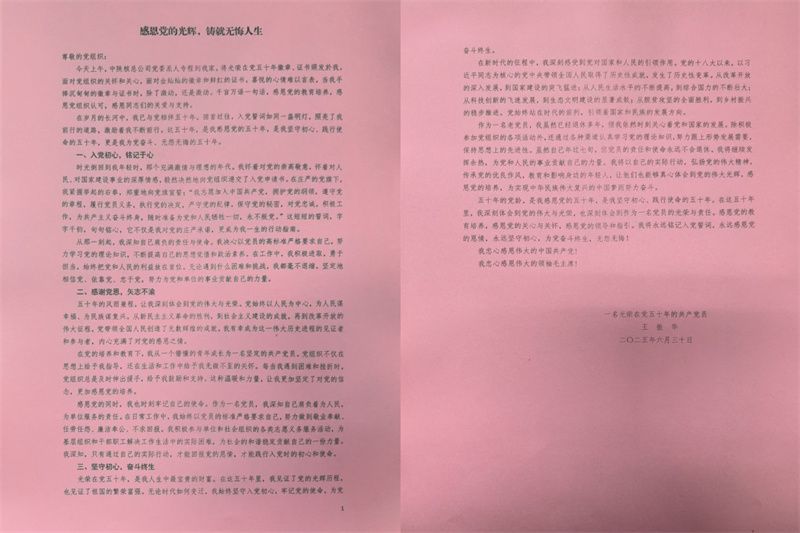 近日,一封承载着半个世纪信仰与深情的特殊信件,在置业公司全体党员中掀起热烈反响。刚刚荣获"光荣在党50年"纪念章的老党员王振华,以书信形式向党组织深情倾诉五十载党员生涯感悟,寄托对集团公司发展的殷切期盼,为全体党员带来一堂生动的精神党课。 1974年12月12日,王振华在党旗下庄严宣誓,自此将半生心血镌刻在核工业事业的壮丽征程中。五十年间,他始终以党员标准为尺,以“为人民服务”为旗,在工作岗位上书写了无数奋斗篇章。...