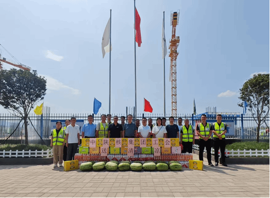 近日,中陕核集团副总经理岳荣昌一行赴西北建宝鸡港务区国家生产服务型物流枢纽基础设施建设项目、宝鸡综合保税区智能电子产业园项目,开展“送清凉”高温慰问活动,为坚守一线的员工送去防暑物资与公司关怀,西北建党委委员、副总经理韩大龙陪同慰问。岳荣昌一行深入施工现场,实地检查项目进展、安全生产及防暑降温措施落实情况,并亲手将清凉饮料、矿泉水、西瓜等物资送到员工手中。 岳荣昌代表中陕核集团向高温下坚守岗位的员工致以敬意,...