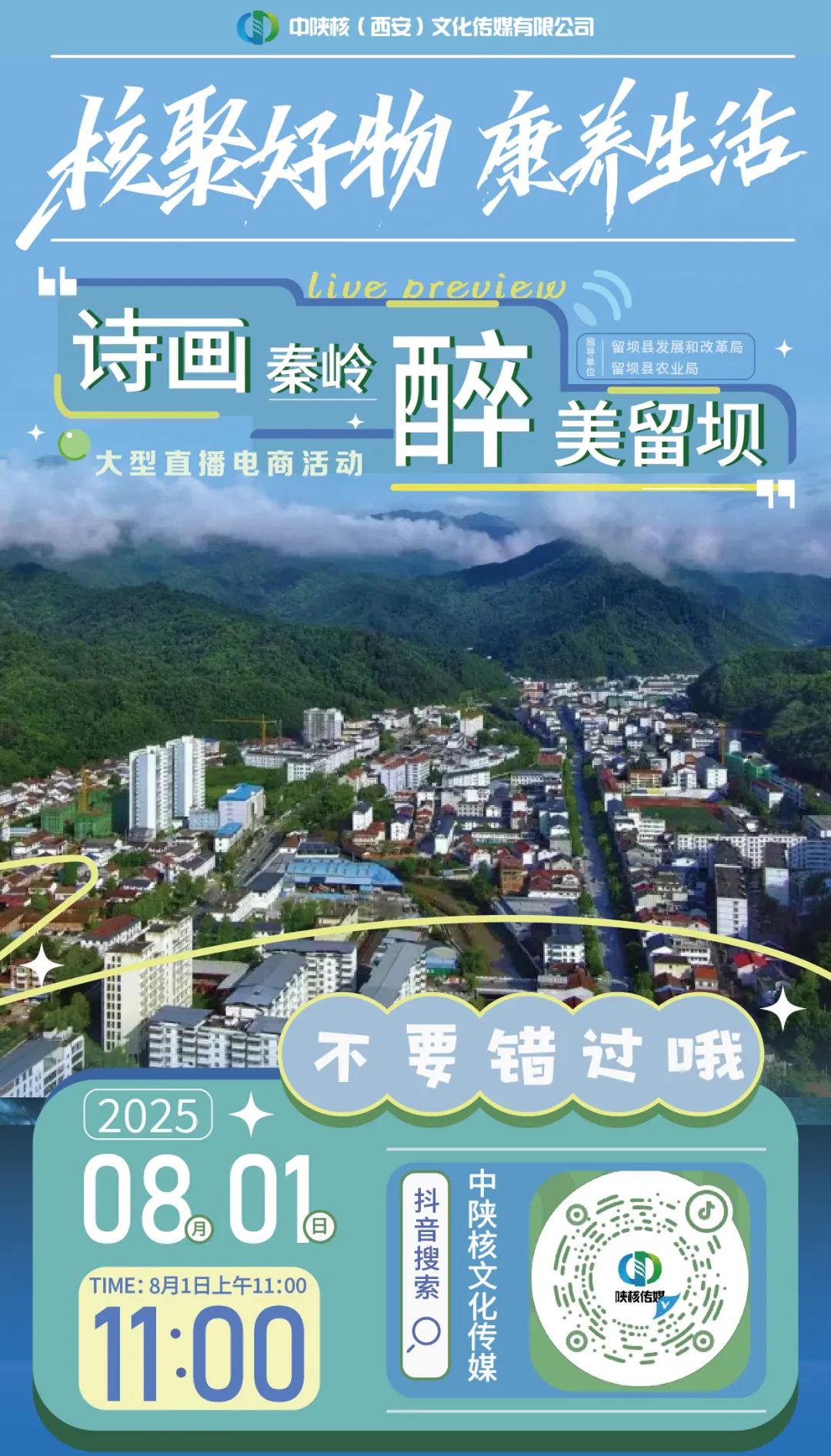 为深入践行“两山理论”与“乡村振兴”的国家战略,陕核传媒积极响应号召,依托集团主责主业,聚焦服务医康养专业优势,以数字化营销赋能乡村振兴。2025年8月1日上午11点,经过精心组织策划,陕核传媒将联合留坝县县委、县政府和陕西省残疾人互联网产业示范基地,严选当地优质农产品与康养滋补品,在抖音推出主题为“诗画秦岭·醉美留坝”助农助残专场户外直播活动。中陕核集团作为留坝县乡村振兴双联单位,依托留坝得天独厚的生态优势,...
