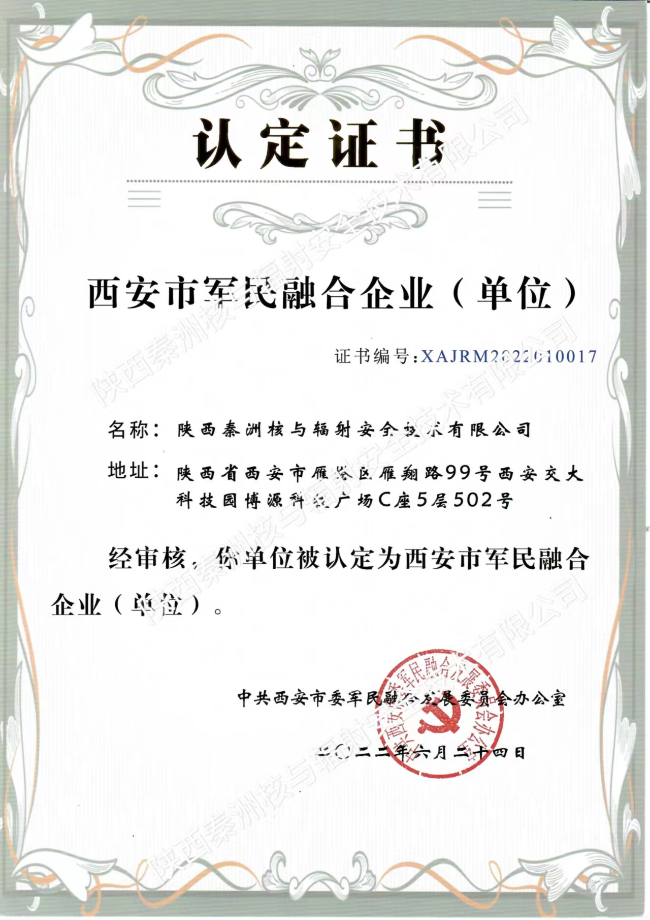 近日,中共西安市委军民融合发展委员会公布了西安市2022年第一批军民融合企业(单位)名单,中陕核集团核盛公司的控股子公司——陕西秦洲核与辐射安全技术有限公司(以下简称“秦洲公司”)被认定符合军工产品配套类...