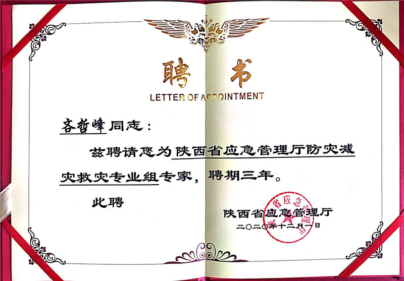 近日,从陕西省应急管理厅传来喜讯,经推荐、审核、公示,工勘院总工程师吝哲峰入选陕西省应急管理厅防灾减灾救灾专业组专家,赵学理、齐普荣入选陕西省应急管理厅地质灾害专业组专家,并于近期颁发了专家聘书。 自...