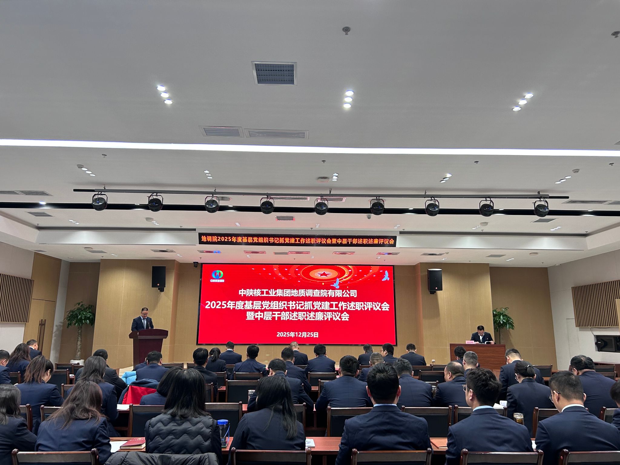 2025年12月25日上午,地调院在集团新二楼会议室隆重召开2025年度基层党组织书记抓党建工作述职评议会暨中层干部述职述廉评议会,地调院领导班子成员、全体中层干部及职工代表共计五十余人参加会议。会议采用“现场述职与书面述职相结合”的方式进行。2名管理部门负责人和8名生产单位中层副职立足本职岗位,分别从年度工作实绩、存在问题剖析、下一步工作规划及廉洁从业情况四个维度进行了现场述职述廉,其余中层干部提交书面述职报告进行审阅。...