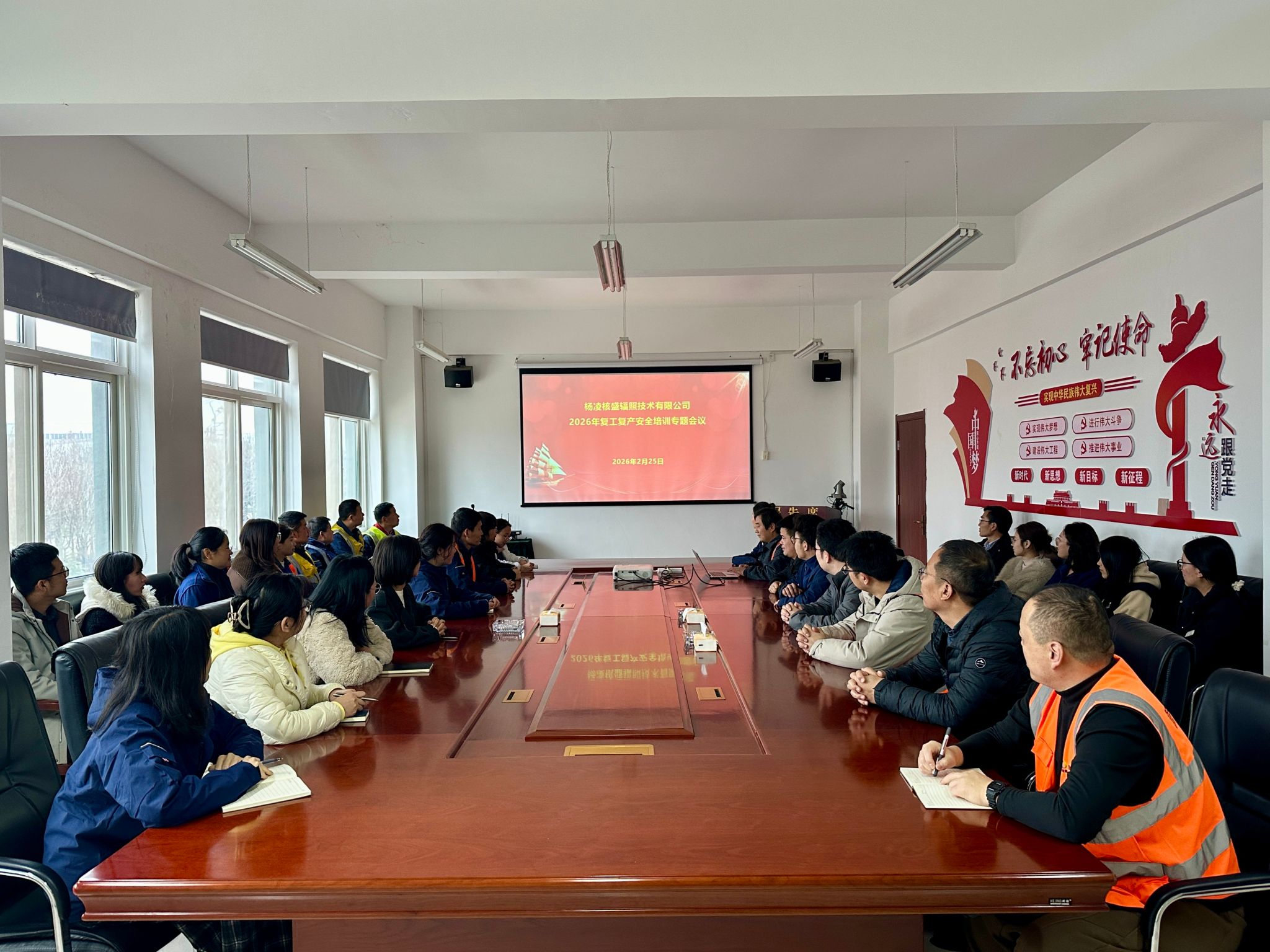 春启新程,安全先行。为切实抓实节后复工复产安全生产工作,筑牢安全生产防线,保障公司生产经营工作安全有序开展,2 月 25 日,杨凌辐照公司召开 2026 年复工复产安全培训会。公司执行董事、安委会主任李奎,其他领导班子成员以及安委会全员参加会议,会议由公司副总经理、安委会副主任牛伟主持。首先,李奎传达了《省国资委关于切实加强当前安全生产工作的紧急通知》精神,要求全体员工深刻认识当前安全生产工作的严峻性和重要性,...