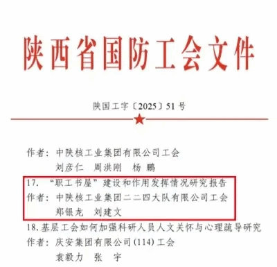 近日,在2024年度省国防工会系统优秀调研成果评选活动中,由中陕核二二四队王亚光、陈超撰写的《职工技能培训与职业发展路径实践研究报告》荣获一等奖,郑银龙、刘建文撰写的《“职工书屋”建设和作用发挥情况研究报告》荣获三等奖。荣获一等奖的《职工技能培训与职业发展路径实践研究报告》,聚焦企业人才队伍建设的核心环节。报告紧密结合二二四队发展实际与职工成长需求,系统梳理了当前技能培训体系的成效与不足,深入探讨了职业发展通道设计与优化的实践路径。...
