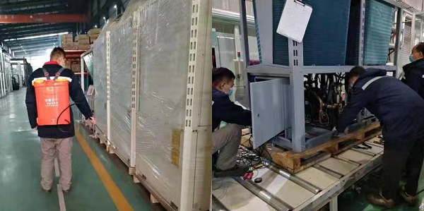 近期,中陕核宜威公司咸阳分公司按照属地防疫要求,在做好厂区消杀和员工保护的基础上,积极恢复车间正常生产运行,顺利完成80Kw自融霜热泵的调试、检测、运转工作和7台空气源热泵泳池机、热水机装配检测工作。