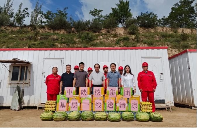 7月22日至24日,中陕核集团党委书记、董事长朱华平带队深入野外生产一线,先后到二一一队、生态公司及地调院,开展夏季“送清凉”慰问活动,为高温下坚守岗位的职工送去防暑降温物资和组织的关怀。
