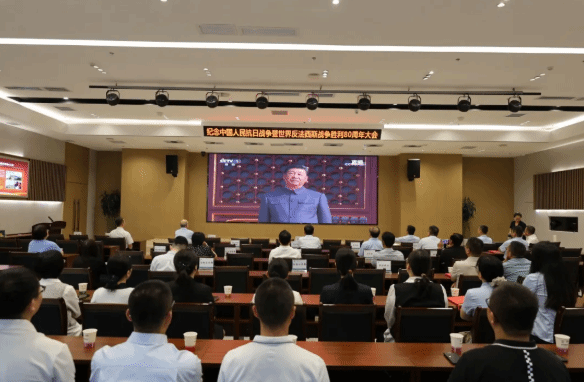 9月3日上午,纪念中国人民抗日战争暨世界反法西斯战争胜利80周年大会在北京天安门广场盛大举行。中陕核集团高度重视,积极安排所属单位组织干部职工收听收看大会实况转播,集团公司领导班子,各部门正、副职和机关部门干部职工在集团新二楼会议室集体收听收看活动。