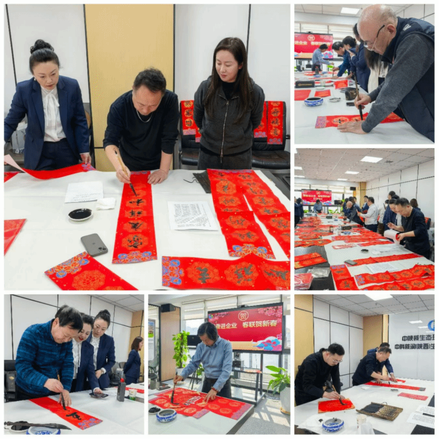 为传承中华优秀传统文化,营造欢乐祥和的节日氛围,1月16日,生态公司邀请陕西书画院的书画家开展“墨香进企业 春联贺新春”活动,书画家们现场挥毫泼墨,为员工们书写春联和“福”字,提前送上新春的美好祝福。